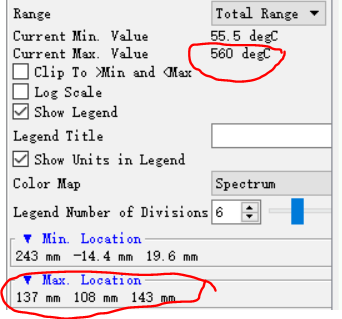 所以,這位朋友用將等溫面的溫度調(diào)到560℃,發(fā)現(xiàn)后處理的窗口沒有顯示。其實(shí),這并不是沒有找到極值的位置,而是極值的顯示有一點(diǎn)偏差。
