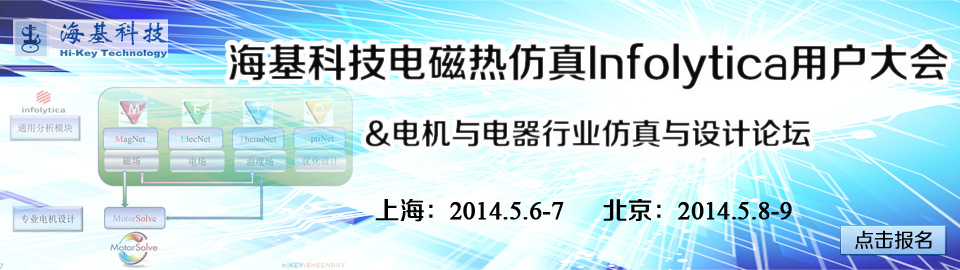 近年來(lái),航空、航天、電氣、汽車(chē)、船舶、核工業(yè)、磁懸浮等行業(yè)以及科研教育領(lǐng)域的客戶(hù)對(duì)復(fù)雜的磁場(chǎng)、電場(chǎng)、熱場(chǎng)及綜合場(chǎng)耦合問(wèn)題越來(lái)越關(guān)注,變壓器的漏磁、損耗、絕緣等問(wèn)題,各類(lèi)專(zhuān)業(yè)電機(jī)的設(shè)計(jì)及噪聲問(wèn)題也都凸顯出來(lái),因而客戶(hù)迫切需求提供相應(yīng)的行業(yè)領(lǐng)域解決方案。為了給大家提供一個(gè)學(xué)習(xí)交流的平臺(tái),海基科技將于2014年5月6-7日和2014年5月8-9日分別在上海、北京舉辦“海基科技電磁熱仿真Infolytica用戶(hù)大會(huì)&電機(jī)與電器行業(yè)仿真與設(shè)計(jì)論壇”。海基科技誠(chéng)邀您的參加!