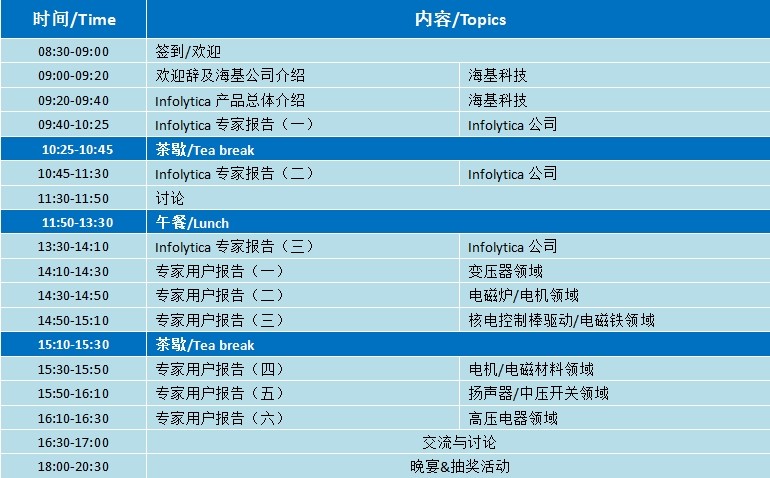 在本次會(huì)議上,我們也將邀請(qǐng)來(lái)自變壓器、高壓電器、中壓開(kāi)關(guān)、電磁爐、電磁核電控制棒驅(qū)動(dòng)、電機(jī)、揚(yáng)聲器、電磁材料等各領(lǐng)域的Infolytica專(zhuān)家用戶(hù)做報(bào)告,介紹他們最新研究成果,我們相信來(lái)自同行的經(jīng)驗(yàn)對(duì)您和我們都是不可多得的學(xué)習(xí)和交流機(jī)會(huì)!此外,為了幫助與會(huì)者更全面的解決仿真工作中常遇到的一些問(wèn)題,第二天海基特別安排了“電機(jī)與電器行業(yè)仿真與設(shè)計(jì)論壇”,全程免費(fèi)。屆時(shí),工程師將為您具體講解電機(jī)與電器的電磁場(chǎng)仿真方案、冷卻系統(tǒng)設(shè)計(jì)方案、散熱解決方案及噪聲分析方案等方面內(nèi)容,期待您的蒞臨。