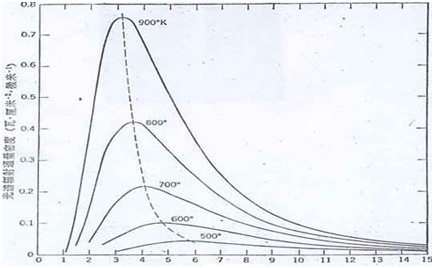 維恩位移定律說明,黑體越熱,其輻射譜光譜輻射力(及某一頻率的光輻射能量的能力)的最大值所對應(yīng)的波長越短,例如,太陽表面溫度大約是5770K,其峰值輻射波長則為0.502μm,為黃光范圍,熱設(shè)計所涉及的物體表面溫度大約500K左右,其峰值輻射波長約為5.79μm,處于遠紅外區(qū)域。