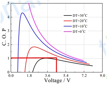 COP值還可以在COP、電壓、溫差圖中查知。
