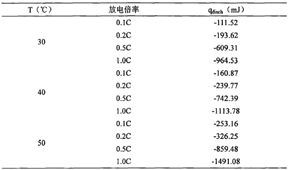 表1 不同工作環(huán)境溫度下CR2025型LiFePO4鋰離子電池在不同放電倍率下產(chǎn)熱量對比(負(fù)號表示放出熱量)