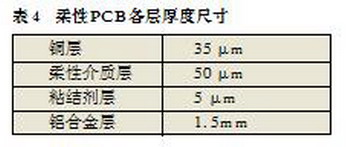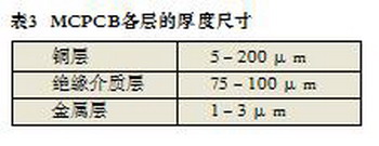 MCPCB的結構如圖7所示。各層的厚度尺寸如表3所示。