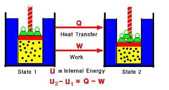 一個(gè)熱力學(xué)系統(tǒng)的內(nèi)能增量等于外界向它傳遞的熱量與外界對(duì)它所做的功的和。