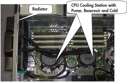 圖三 HP Z400單路至強(qiáng)工作站液冷散熱模塊