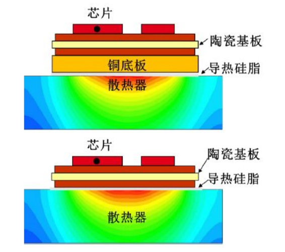 圖1 有銅底板和無銅底板模塊結(jié)構(gòu)