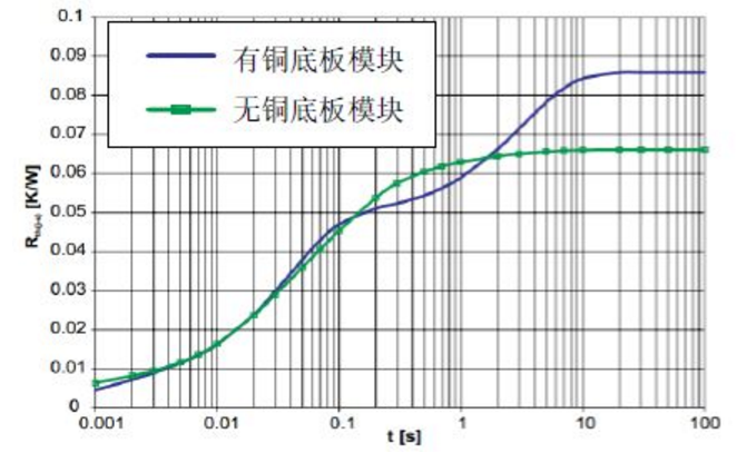 圖11 有無銅底板的熱阻動態(tài)響應(yīng)比較