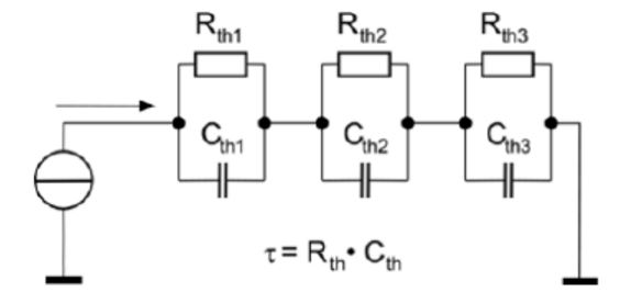 上面我們討論了熱阻Rth的相關(guān)定義和測量,都是基于穩(wěn)態(tài)的特性。實際應(yīng)用中我們還要考慮熱阻的動態(tài)效應(yīng)。利用熱阻Rth和熱容Cth可以構(gòu)建一個類似RC低通電路的熱模型,可以用瞬態(tài)熱阻或熱阻抗Zth來表示這種模型。我們以散熱器為例從物理角度進行簡單的說明。散熱器一般都是鋁制品,具有良好的導熱性和散熱性,因此熱阻非常低。然而即使有穩(wěn)定的熱源,由于熱容效應(yīng),也需要一段時間才能把整個散熱器加熱,散熱器的熱容量越大,需要加熱的時間就越長。而散熱器可以存儲的能量是有限的,一旦存儲量達到最大值,散熱器就達到了一個相對最大溫度,如果撤銷熱源,散熱器存儲的能量就會釋放,這和電容充電是完全一樣的道理,電容充滿后,電荷量就達到最大值。