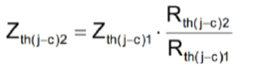 對于一個給定封裝的模塊,IGBT熱阻抗Zth曲線可以隨著不同的芯片面積上下變動,即芯片面積可以改變阻抗的絕對值。熱阻和熱阻抗是成等比例變動的,因此可以用如下公式來計算不同芯片表面積的熱阻抗。