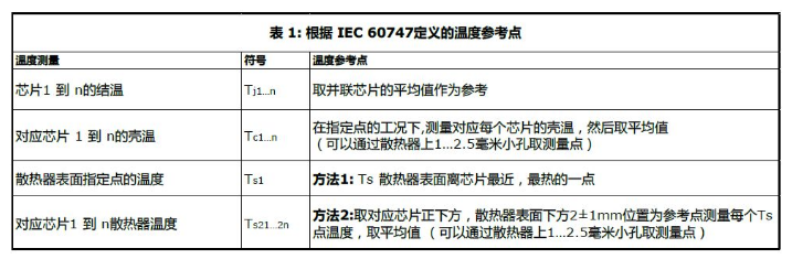 下表是根據(jù)IEC標準對多芯片并聯(lián)溫度測量點的總結(jié):