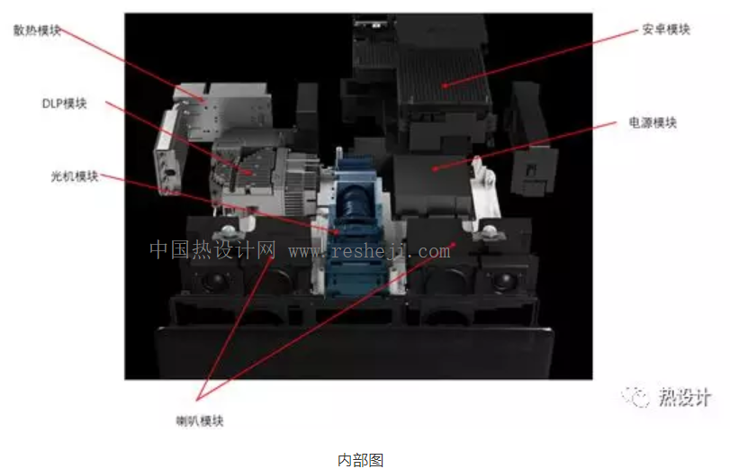 下面這張圖我們可以有更直觀的感受,行家們一看,也知道,我們散熱工程師登上舞臺的就是激光電視硬件三大件之一:主機。