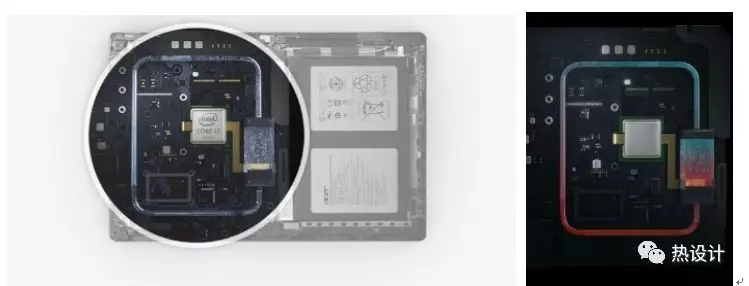 雖然沒(méi)有進(jìn)一步的資料證明,但從對(duì)產(chǎn)品的成本、性能等影響,以及結(jié)合Acer創(chuàng)新性地使用環(huán)路熱管這一方案來(lái)看,自然散熱優(yōu)化思路中d(使用高導(dǎo)熱效能的導(dǎo)熱界面材料),h(元器件布局設(shè)計(jì))和i(軟件的智能溫基降頻)等設(shè)計(jì)技術(shù)應(yīng)該也已在Switch Alpha 12中使用。通過(guò)多方面的綜合努力,Acer在這樣的空間內(nèi)實(shí)現(xiàn)了15W的熱設(shè)計(jì)功耗,其極限體積熱流密度達(dá)到了26.8 W/L,遠(yuǎn)高于常規(guī)認(rèn)為的12W/L的自然散熱安全功率密度限。