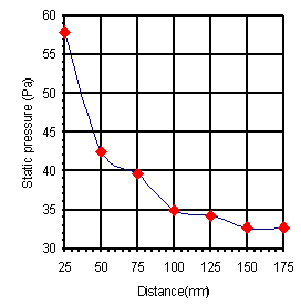 圖2、風扇平均風量和平均風壓與距離之間的關系