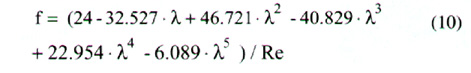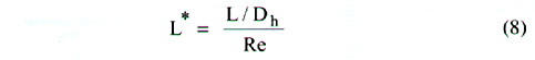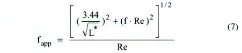 對于流動起始段,表面摩擦因數(shù)fapp與摩擦因數(shù)f有關(guān);對于充分發(fā)展段,表面摩擦因數(shù)fapp 可由下式計算: