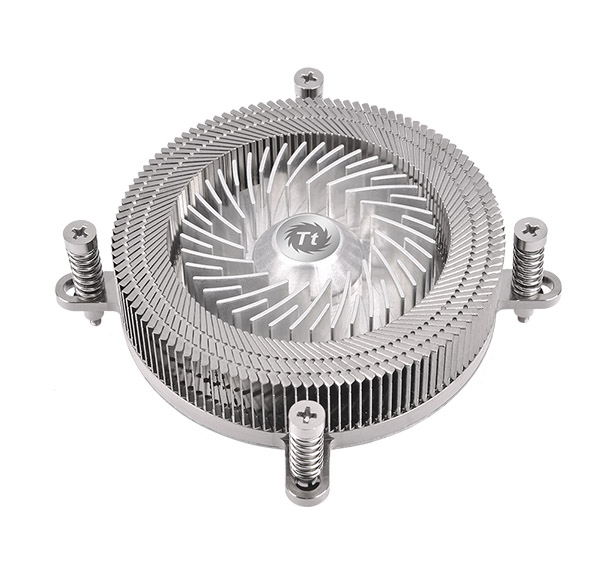 Thermaltake Engine 27 是一款全金屬設(shè)計(jì)的散熱器。其與眾不同之處在于,其部分散熱片可以旋轉(zhuǎn),在用來擴(kuò)展散熱面積的同時(shí),還起到了風(fēng)扇的作用。這款散熱器概念早再2011年就由桑迪亞國家實(shí)驗(yàn)室推出過,但直到近年,市面上才出現(xiàn)真正的產(chǎn)品,由此可見產(chǎn)品實(shí)現(xiàn)過程中涉及到的眾多難題。