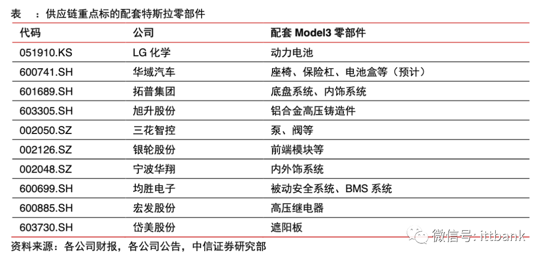 這其中,由于有著傳統(tǒng)燃油車領(lǐng)域的豐富經(jīng)驗(yàn),自主品牌在傳統(tǒng)零部件中的底盤、懸架系統(tǒng),玻璃,內(nèi)外飾總成等領(lǐng)域均已經(jīng)具備了很好的配套能力和基礎(chǔ)。成熟的配套經(jīng)驗(yàn)、充足的產(chǎn)能供給、具有競爭力的產(chǎn)品價格成為了這類公司突破特斯拉的核心能力。國產(chǎn)化率較高的部分主要集中在車身底盤、內(nèi)外飾等傳統(tǒng)零部件以及汽車電子中的硬件部分,在電機(jī)電控、控制芯片和系統(tǒng)軟件等電動車關(guān)鍵零部件方面國產(chǎn)化進(jìn)度暫時較慢。由于汽車產(chǎn)業(yè)鏈多數(shù)零部件運(yùn)輸成本較高,國內(nèi)采購更有優(yōu)勢,因此,特斯拉在國內(nèi)的暢銷也會帶動相關(guān)產(chǎn)業(yè)鏈的銷售提升。研發(fā)實(shí)力強(qiáng)、規(guī)模優(yōu)勢較大的電池、電池材料、熱管理系統(tǒng)、電驅(qū)動系統(tǒng)龍頭企業(yè)將會陸續(xù)進(jìn)入特斯拉供應(yīng)鏈,獲得較大的成長空間和產(chǎn)品溢價。