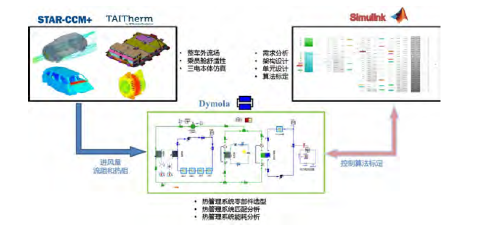 典型的新能源汽車整車熱管理系統(tǒng)包括空調(diào)熱管理系統(tǒng)、電機(jī)電控?zé)峁芾硐到y(tǒng)和電池?zé)峁芾硐到y(tǒng),如果是混動(dòng)車還包括動(dòng)力總成的熱管理系統(tǒng)。多個(gè)系統(tǒng)的集成設(shè)計(jì),大大增加了設(shè)計(jì)難度和研發(fā)成本。借助仿真技術(shù),可以在車型研發(fā)的早期設(shè)計(jì)階段,在實(shí)物樣機(jī)試制前便對(duì)設(shè)計(jì)方案進(jìn)行分析評(píng)估和優(yōu)化,從而能減少樣品試制和試驗(yàn)的輪次,達(dá)到降低成本和縮短研發(fā)周期的目的。