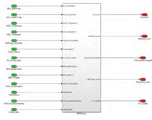 借助整車熱管理被控對(duì)象離線模型,實(shí)現(xiàn)熱管理控制邏輯的快速開(kāi)發(fā)。通過(guò)算法的Simulink 模型與整車熱管理系統(tǒng)被控對(duì)象模型的聯(lián)仿,實(shí)現(xiàn)對(duì)關(guān)鍵控制參數(shù)的標(biāo)定以及熱管理系統(tǒng)能耗的優(yōu)化分析。